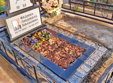 Когда памятник был изготовлен, идём на место захоронения. На данный момент на могиле находится лишь холмик, на котором растут цветы.